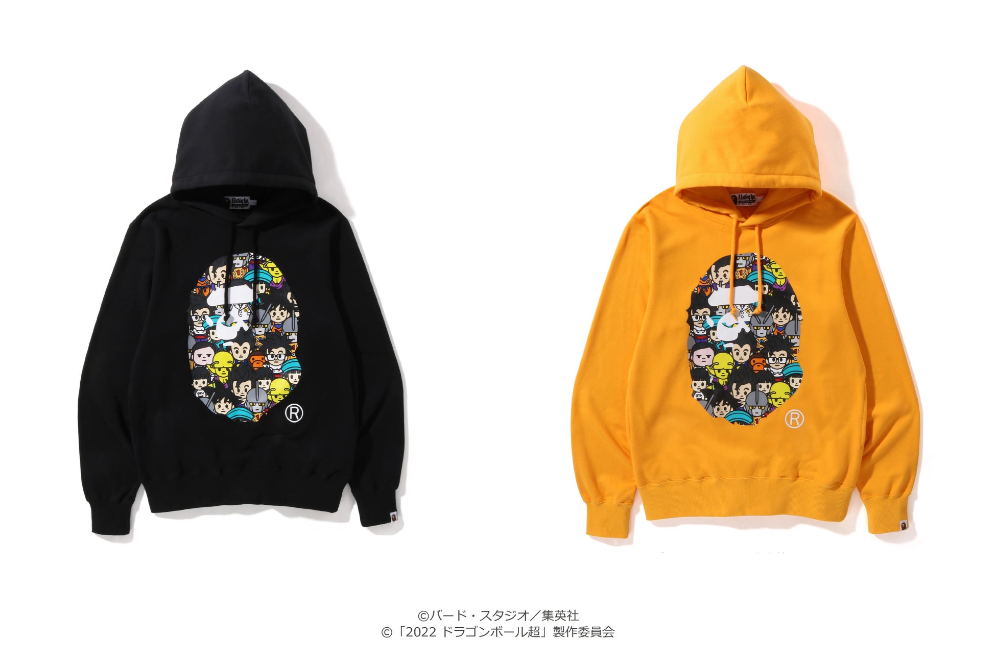 また、フロントにAPE HEAD、バックに“APES TOGETHER STRONG”を配置したフーディーとトートバックでは、人気キャラクターの悟空やベジータ、本作の重要キャラクターでもある悟飯の娘のパンなどが総結集!