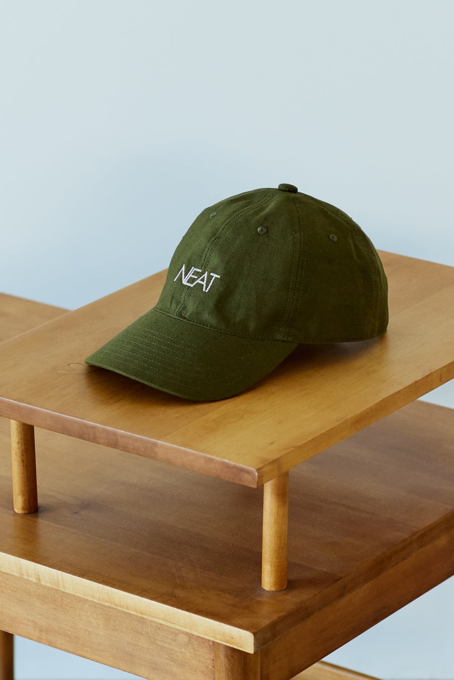 度詰の生地で、カットオフでも解れづらく、着用に伴う経年変化も楽しい生地となっており、さらに NEAT デザイナー西野氏のアイコンでもあるキャップも同生地で別注。