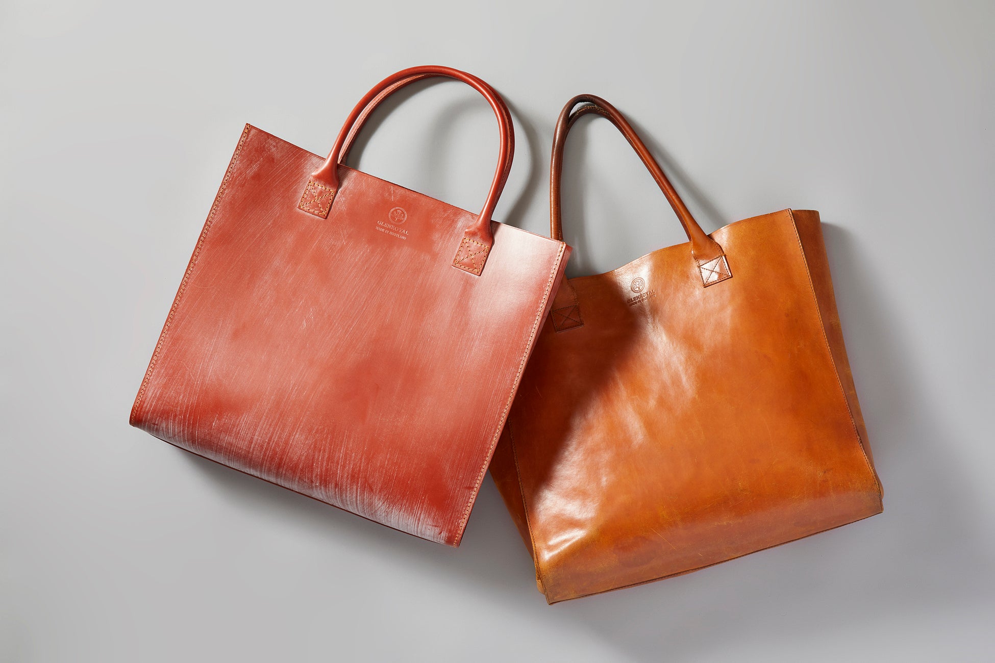 グレンロイヤルで最大容量のオールレザートートバッグ。縦39cm×横43cm×マチ11cmという、1泊程度の旅行鞄としてもおすすめできるサイズ感を誇ります。バッグの内側にブライドルレザーのポケットがついており、書類やタブレットといった薄手のものを入れておくのにおすすめです。ハンドルが肩掛けにも手持ちにも丁度よい長さに設計された逸品です。