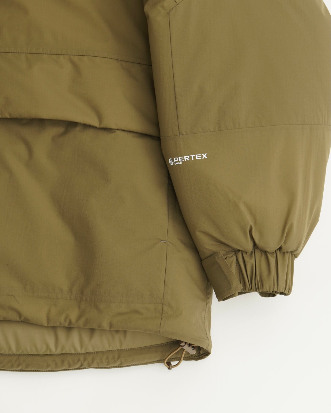 素材は防水性、透湿性に優れた”PERTEX SHIELD”を使用しており、内側には中綿も備わっているので保温性も抜群。襟部分にはフードが収納されており、雨や雪などの悪天候にも対応できる一着です。