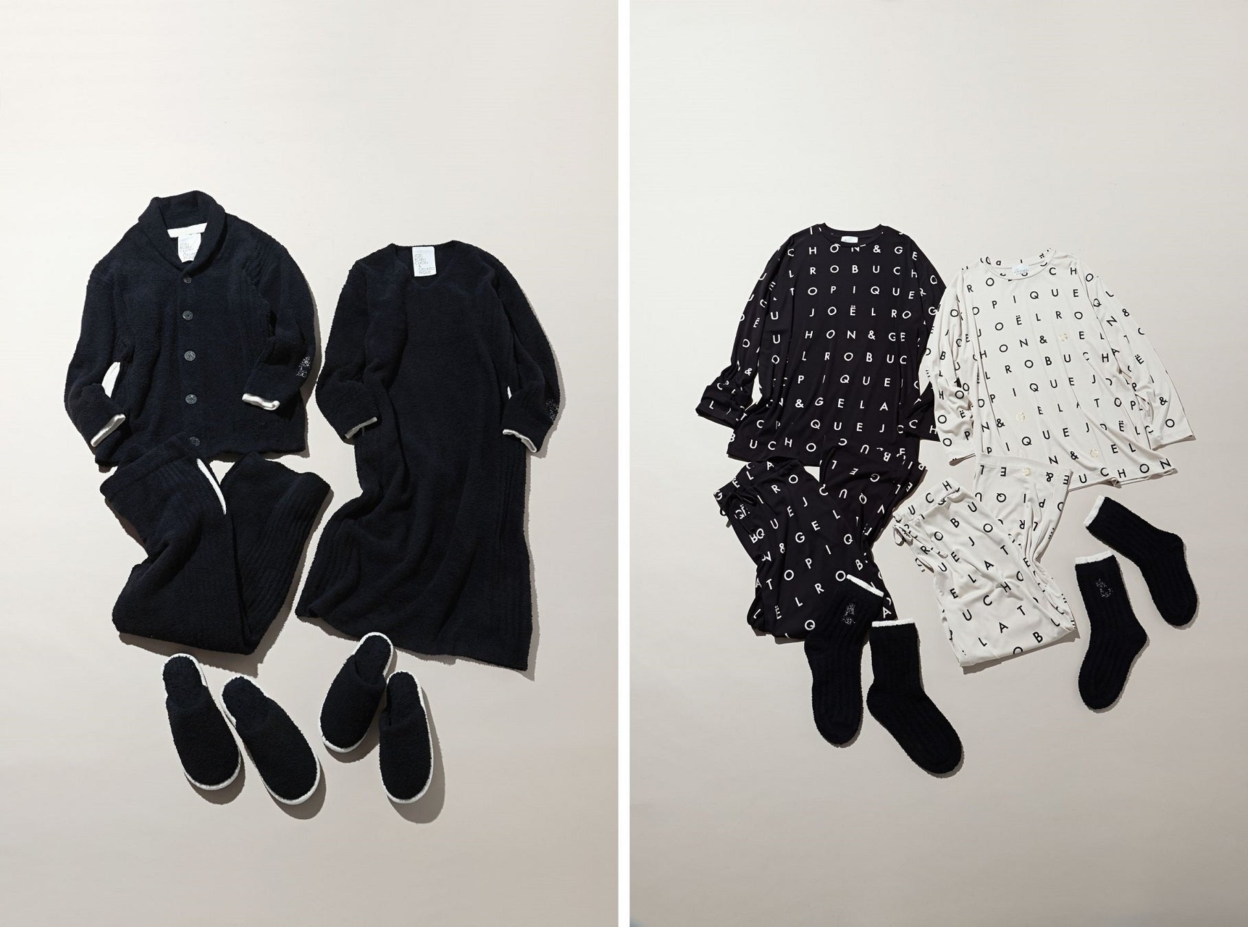 左:ジェラート ピケ オムのオリジナルベアをジャガードで大きくあしらった、‘ベビモコ’素材のルームウェアシリーズ。
