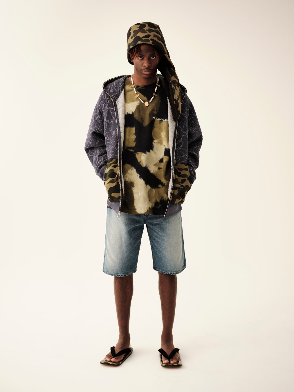 今シーズンのメンズコレクションでは、「CONTEMPORARY STREET」「URBAN OUTDDOOR LIFE」「SPACE UNIFORM」「COLLEGE」「JAPANESE CULTURE」「SPORTS」といった6つのシーズンテーマを掲げ、「BAPE®︎」の代名詞でもある「CAMO」をベースにしたグラフィックや90年代から00年初期のムードをディテールに落とし込んだ珠玉のコレクションを展開。