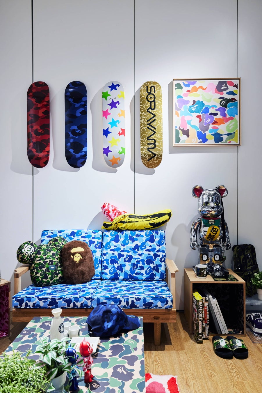 「トレンドはライフスタイルから」というコンセプトのもと、BAPE®︎のアイコニックなパターンをファニチャーに落とし込みました。普段の生活にもBAPE®︎のアイデンティティを取り入れ、BAPE®︎ HOMEとのライフスタイル空間を実現させます。