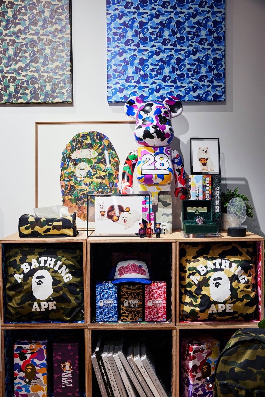 BAPE® PLAYエリアでは、ブランド誕生から30年間に渡り発売してきた様々な名作トイの数々を展示。