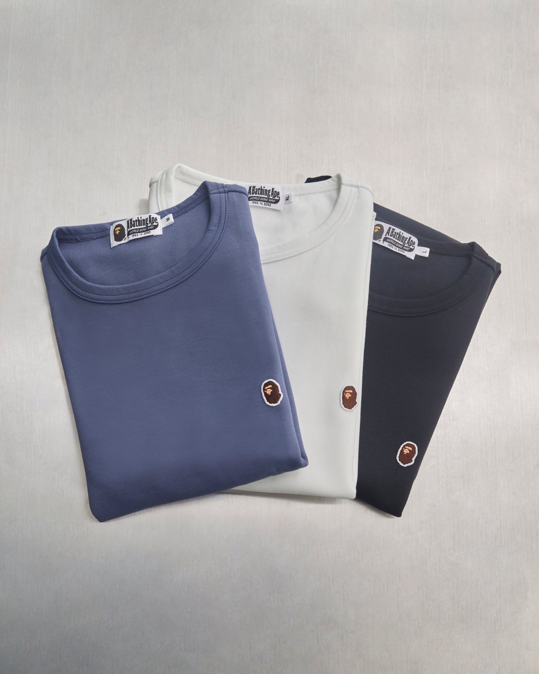 裏側にICEPACK NYLONという特殊ナイロン⽷を使⽤、通常のナイロン⽷に⽐べ2倍の公定⽔分率を保持しているため、保湿性も⾼く⻑時間の着⽤でも蒸れにくい性質を保有。また、ナイロン特有の熱伝導性も保持しており、持続的な冷却効果が期待できるのも特徴。左胸にポケットを配置、BAPEロゴのグラフィックをインクジェットプリントで表現したデザイン。襟ぐりはバインダーネック仕様、左袖にピスネームを配置した仕様。身幅にゆとりのあるシルエット。3色6サイズ展開。