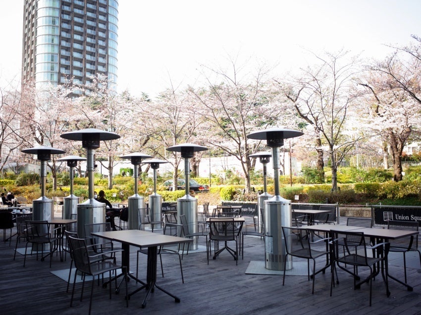 ニューヨーク料理「ユニオン スクエア トウキョウ」は、大きな窓を持つ開放的な店内が魅力です。毎年、3月末から4月に掛けて、窓の外には和むような桜が広がり、桜観賞を兼ねて多くの方にご利用いただいています。今年はこの時期に合わせ、旬の食材を使用した特別コース”2023 SAKURA Dinnerコース”とジャズの生演奏をご用意します。テラスエリアもオープンします。夜には桜はライトアップされるので、夜桜ディナーとしてお楽しみいただけます。また、送別会や歓迎会などにご利用いただければ、記憶に残る特別なひと時となることに間違いありません。