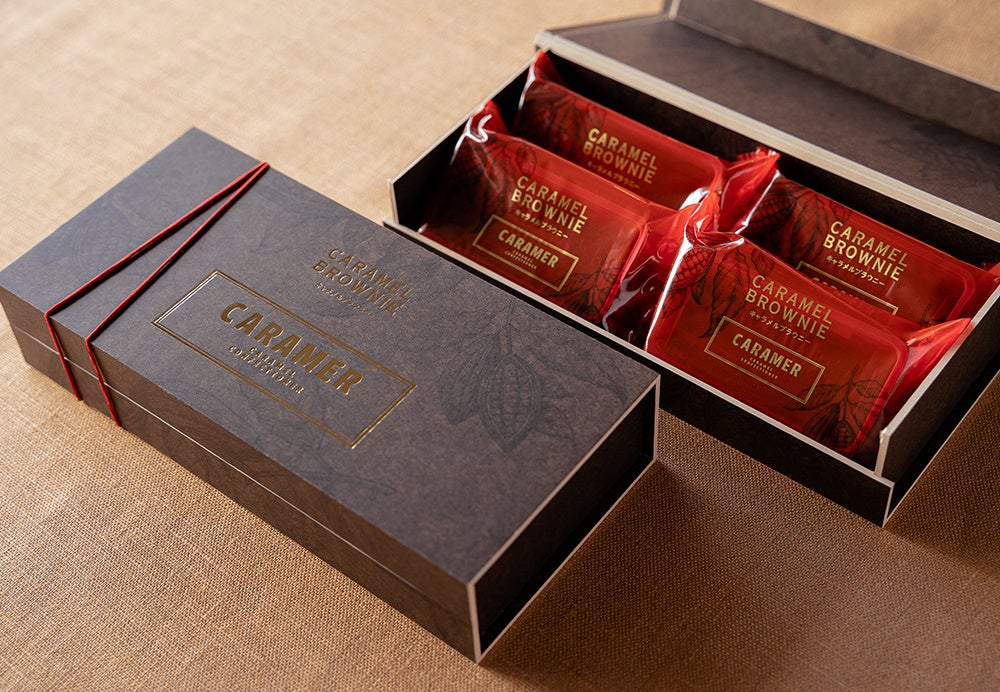 キャラメルとチョコレートの香り、味わいをより感じていただくために、ブラウニー生地の原材料を大幅にアップデートしました。バター、チョコレートのボリュームを多くしたリッチなレシピに一新。存在感のあるブラウニーを味わっていただきたくて、キャラメルクリームのレシピも微調整をし、洗練された味わいに仕上げました。