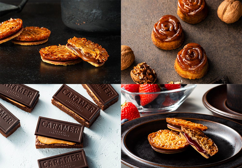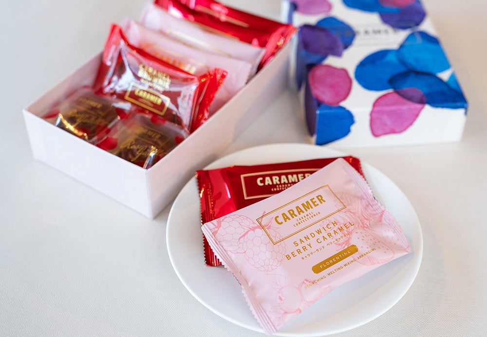 季節限定の「キャラマーサンド ベリーキャラメル」は3種のベリーの洗練された酸味と甘味、フロランタンの華やかで香ばしい香りの調和を感じていただける一品。「ローズガレット」はバターの芳醇な香りを引き出したガレット生地に胡桃を混ぜ合わせ、華やかなバラの形に焼き上げました。そして「キャラメルブラウニー」は、なめらかなくちどけと、しっとりと濃厚な味わいの正統派ブラウニーに、キャラメルクリームを重ね、オリジナルロゴが刻まれたハイカカオチョコレートプレートをのせた大人スイーツ。それぞれ違ったキャラメルを堪能いただけるギフトボックスです。