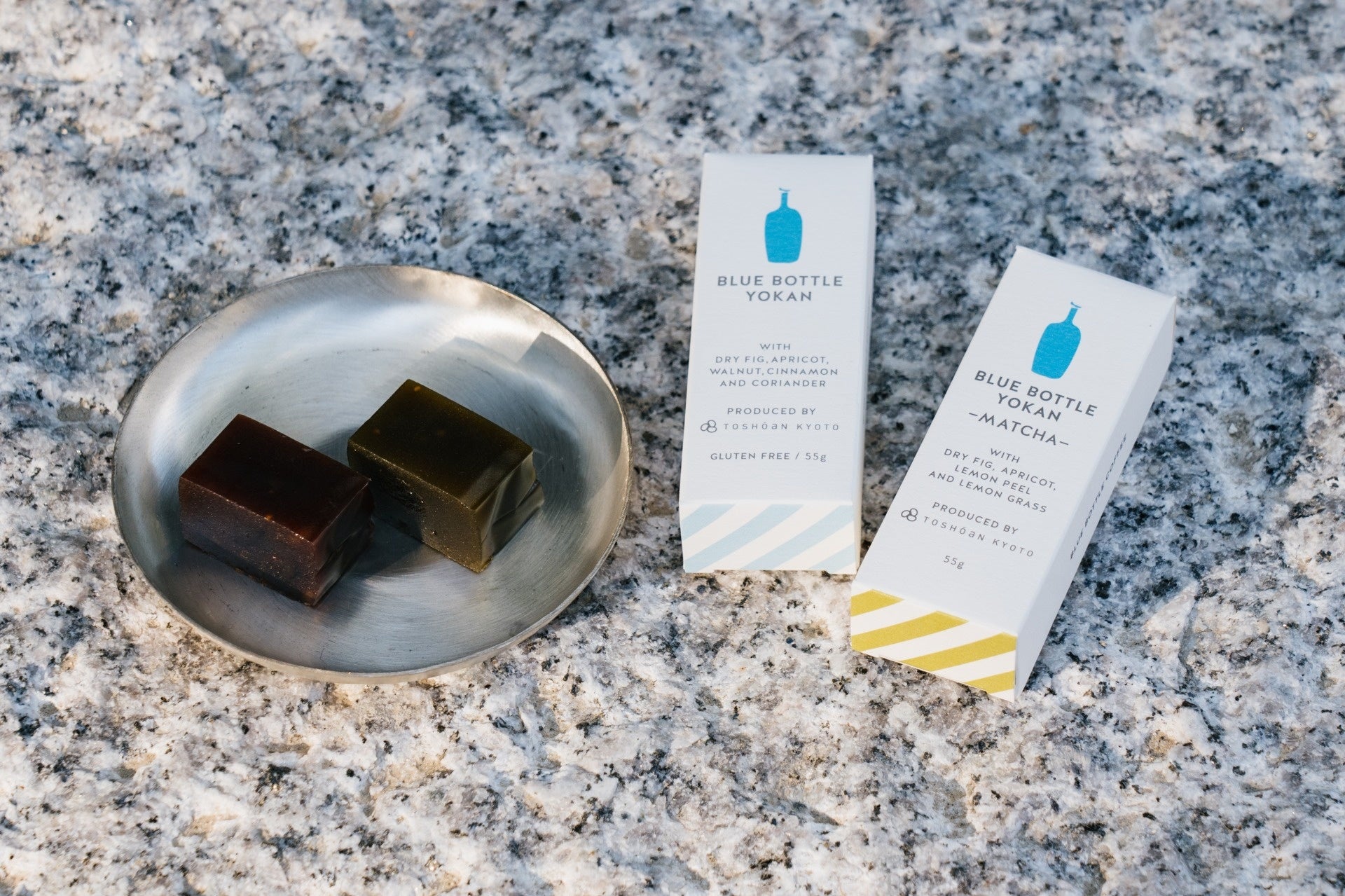 手軽にお召し上がりいただけるメニューには、京都堀川三条で60年以上続くあんこ屋「都松庵(としょうあん)」とコラボレートしたまさにコーヒーのための羊羹をご用意しています。あっさりとした浅練りの生地に、イチジクやくるみを入れ、さらにシナモンとコリアンダーをアクセントに効かせた上品な味わいの「ブルーボトル 羊羹」、そして白あんをベースにレモンとレモングラスを合わせた「ブルーボトル 羊羹 抹茶」の2種類です。コーヒーを片手にお召し上がりいただける包装ですので、アウトドアコーヒーにもぴったりです。