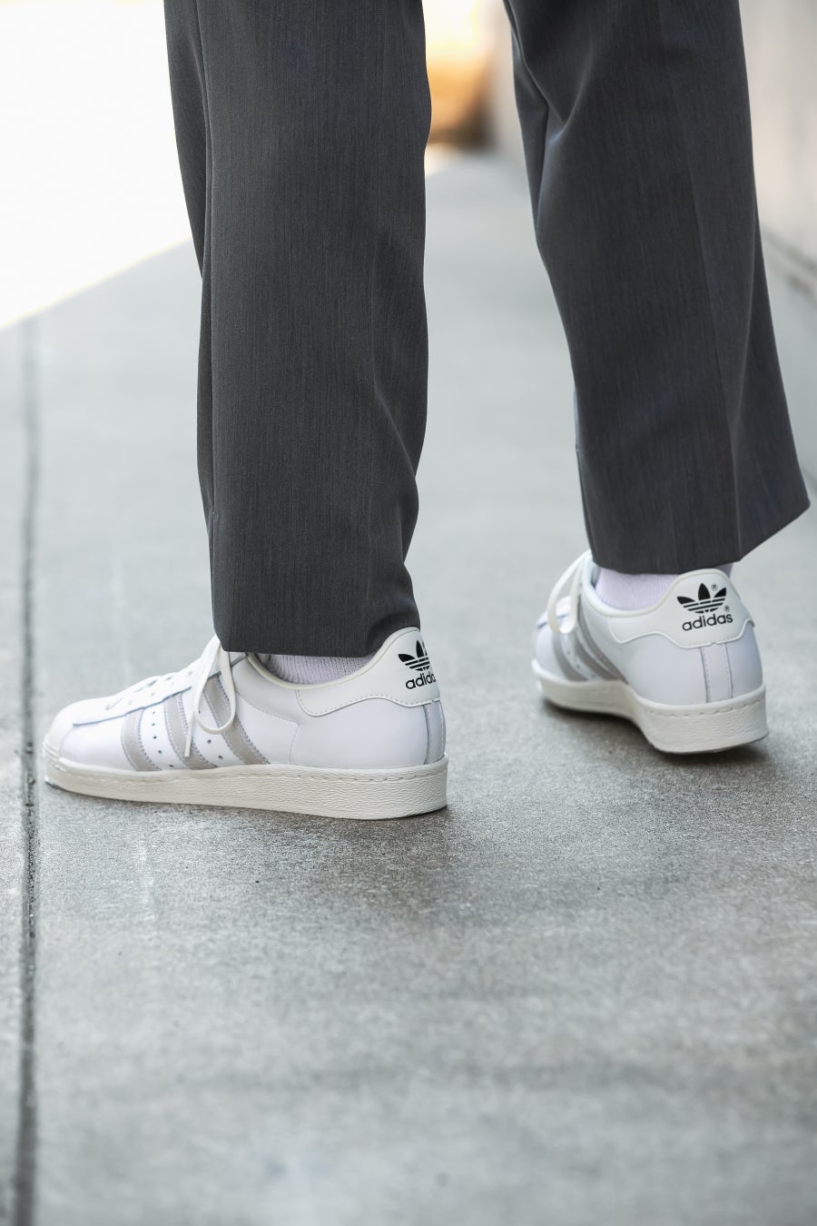 きれいめにも落とし込みやすいソリッドな配色と、当時採用された通称”金ベロ”が最大のポイントで、ホワイトのクリーンなボディに、ナチュラルスウェードのスリーストライプスを採用。