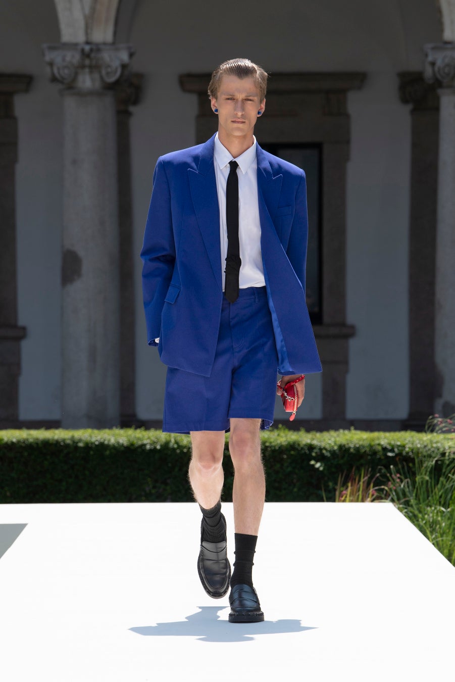 仕立てられたブレザーやコートがショートパンツに合わせられ、若さとエネルギー、やわらかでくつろいだ雰囲気が漂います。