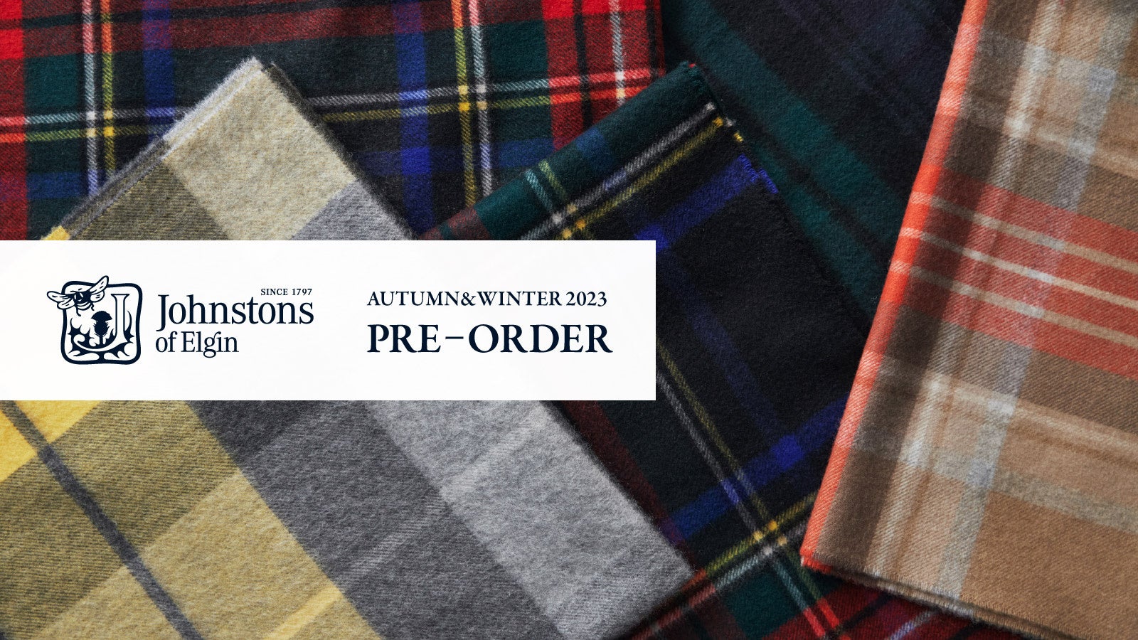最高級のカシミヤを使用したストールやマフラーで人気の「ジョンストンズ オブ エルガン」2023年秋冬コレクション予約会を、ブリティッシュメイド オンラインショップと全国10店舗にて開催いたします。一番の人気を誇る英国伝統のタータンを配した「WA56 大判ストール」や、2023年秋冬の最新コレクションをいち早くご予約いただける貴重な機会となっております。