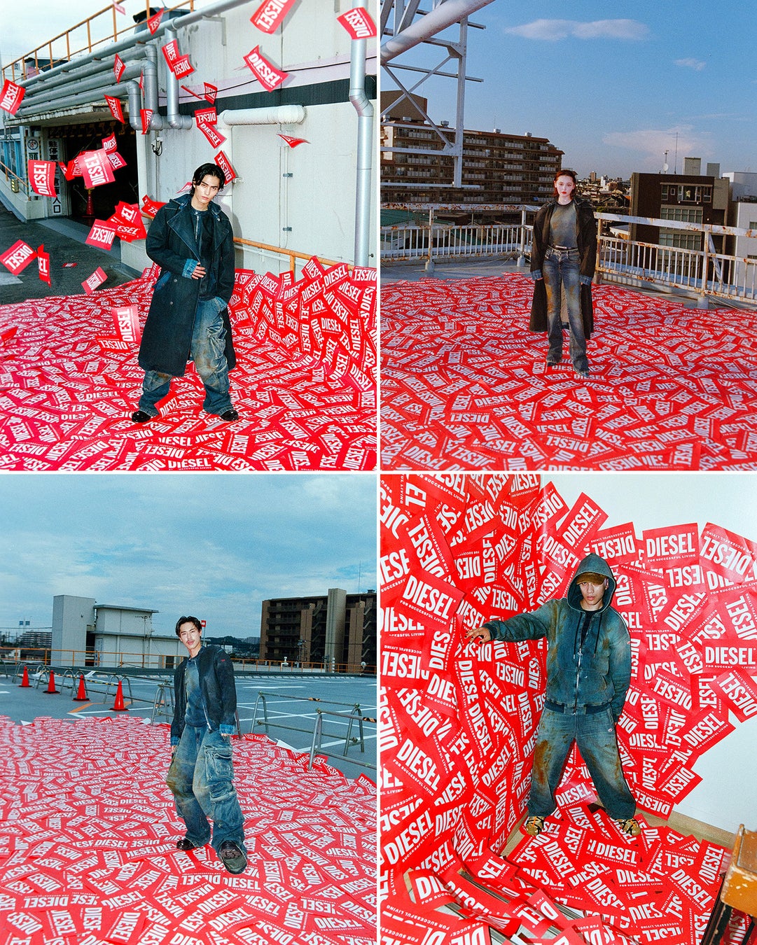 日本のポップアップ限定カプセルコレクションの発売を記念して、モデル・俳優・DJの大平修蔵、俳優・モデルの玉城ティナ、若手俳優の戸塚純貴、モデル・DJの井上ヤマトを起用したキービジュアルを公開。写真家・小見山峻が、ヴィンテージデニムのルックを纏った個性あふれる4人を赤いディーゼルロゴが溶け込む東京の日常の景観を背景に撮影しています。また、8月16日(水)より伊勢丹新宿店 メンズ館で展開するポップアップストアでは、小見山峻が撮り下ろした写真を展示。キービジュアルでは見られない写真をぜひ会場でお楽しみください。