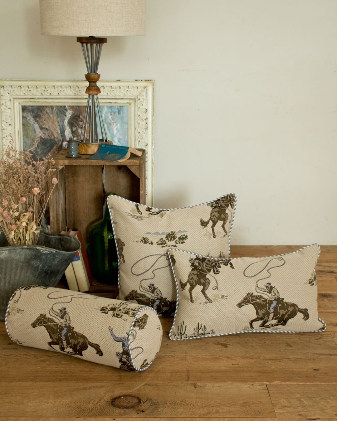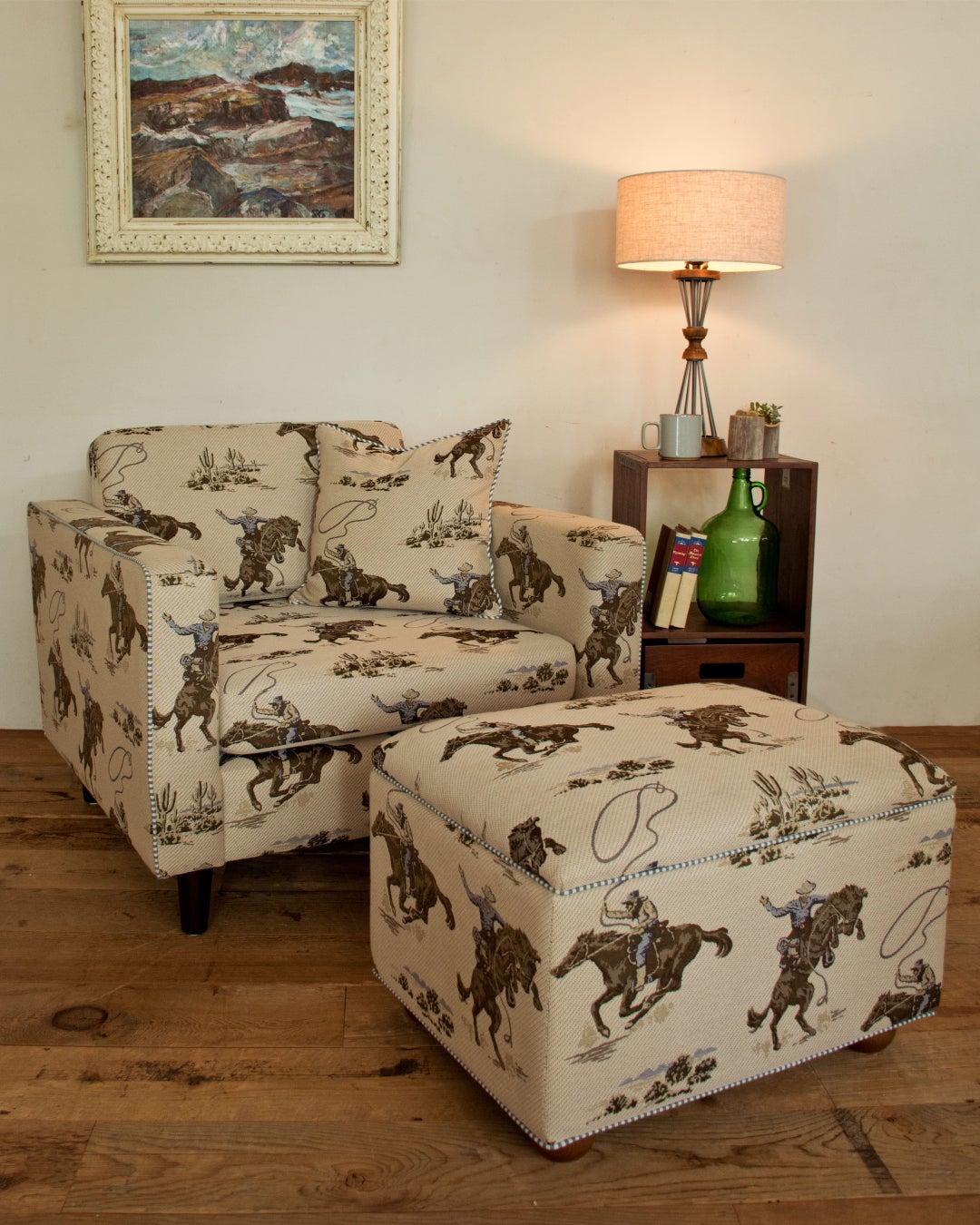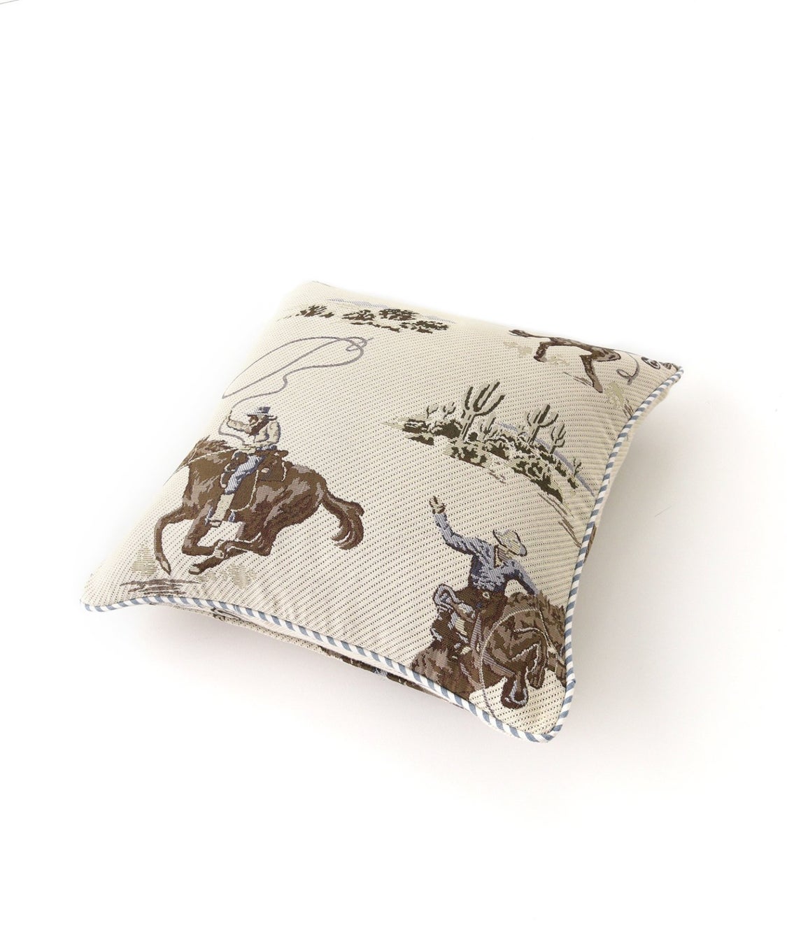 1950年代ヴィンテージのウエスタンパターンをモチーフにしたカウボーイ柄。ヴィンテージ感溢れる色合いはそのままに、ジャガードファブリックで再現することにより立体感ある表情に仕上がりました。