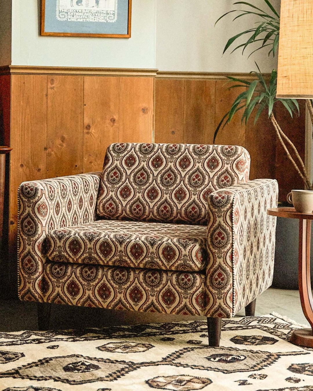 膨大なアーカイブからデザインをピックアップし、ファブリックに落とし込んだプロダクトに加え50年代のアメリカンヴィンテージファニチャーで使われていたファブリックを復刻し、家具に張り、壁紙にするプロダクトを3社によるコラボレーションで実現しました。