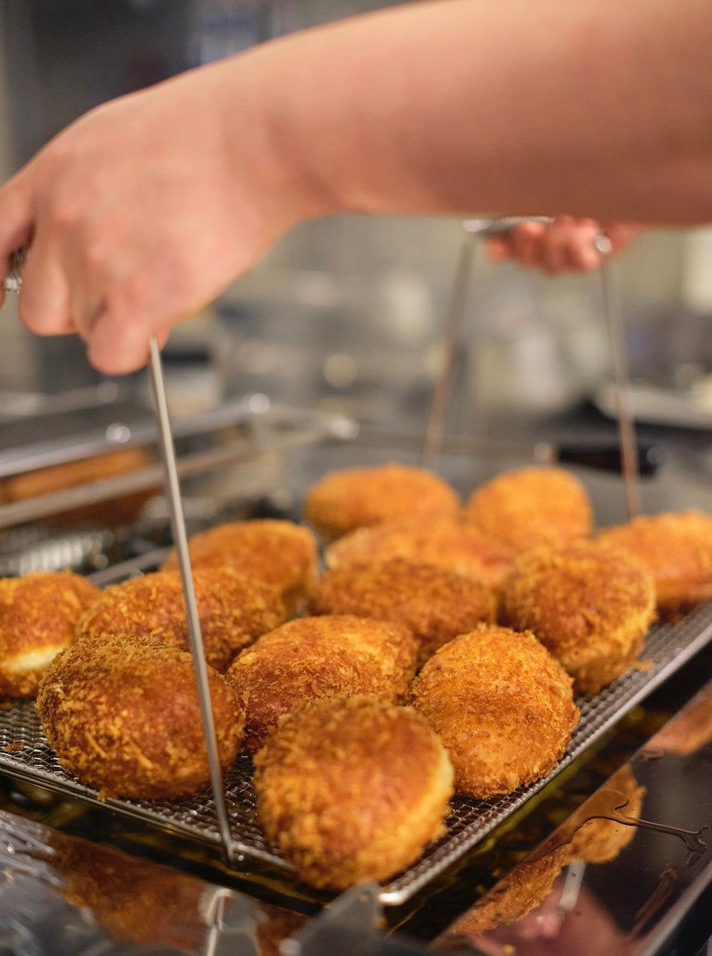 お客様の声で大きさ、食べた時の食べ応え感などを良く褒めて頂けるのですが、それの秘密は店内調理が答えです、店舗では揚げるだけなどは良くありますが、カレーパン専門店である以上、見た目にもこだわりを持っております。