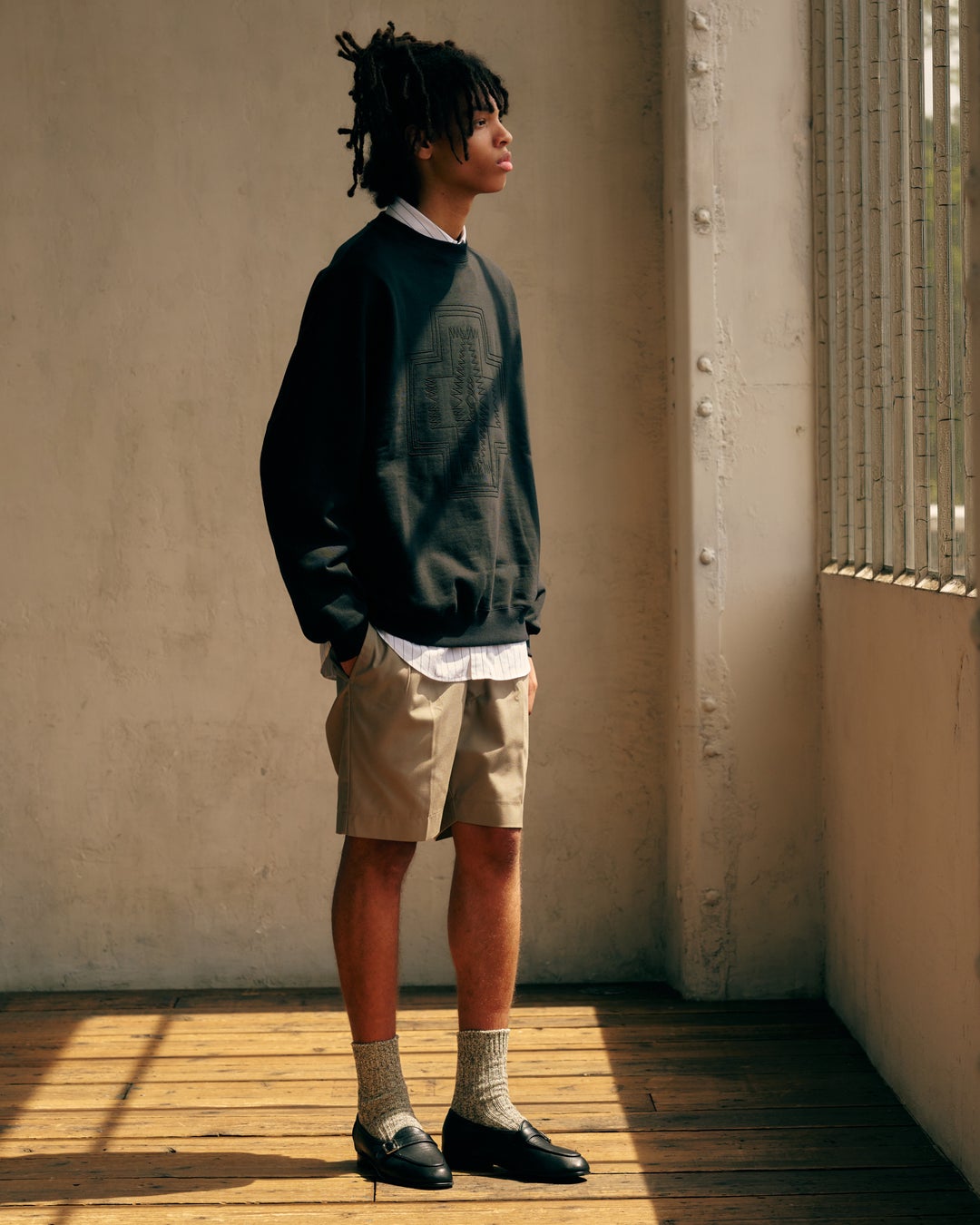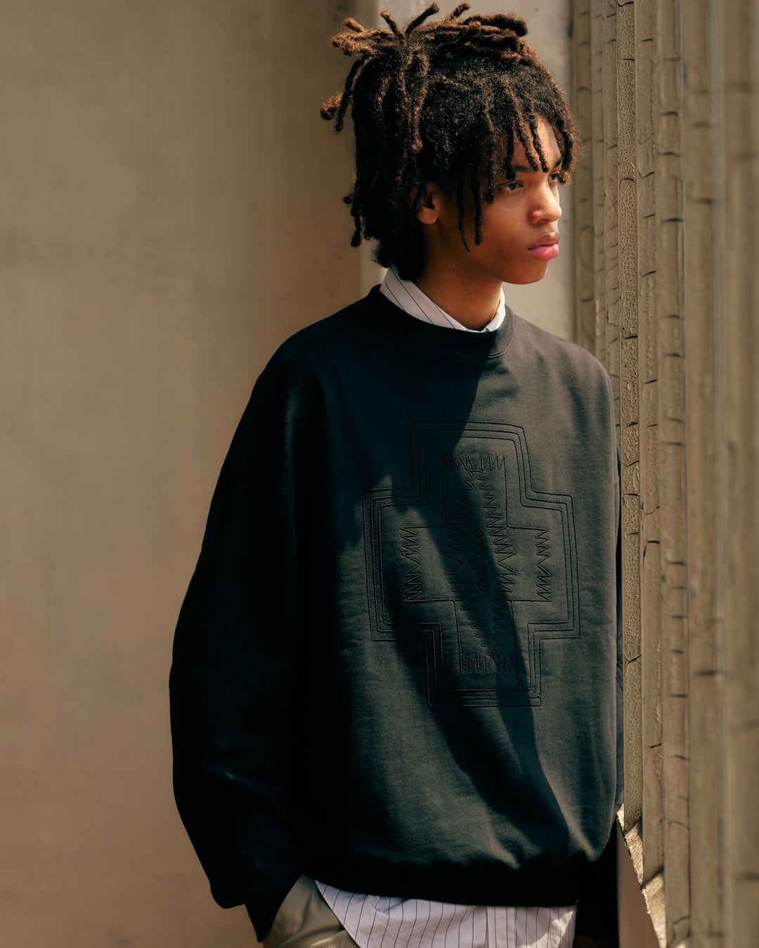 オーバーサイズのボディにハーディング柄のループシームを施したスウェット。ボディと同色で縫われているループシームはさりげないアクセントになっています。
