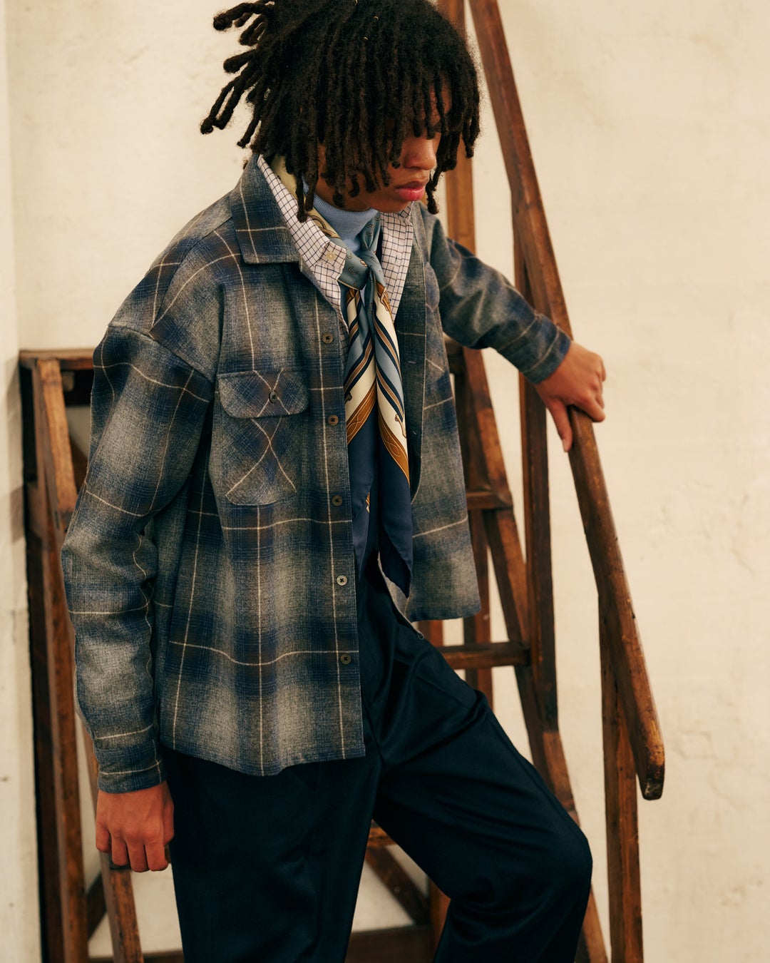ペンドルトン定番のボックスカットのボードシャツをベースに、ミリタリーテイストを加えたオンブレチェックシャツ。従来のモデルより着丈を短くしブルゾンのインナーとしても着用しやすいデザインにいたしました。