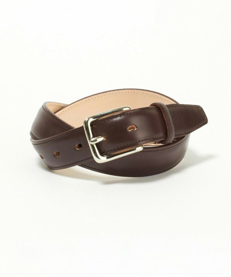 シルバーバックルの控えめな装飾感で、オンスタイルにマッチしてくれます。端正なルックスながら、素材がブライドルレザーに加えて、ステッチありの仕様、また、ベルト幅2.9cmと程よい存在感があるため、タックインスタイルと合わせたオフの格上げ役としてもおすすめです。