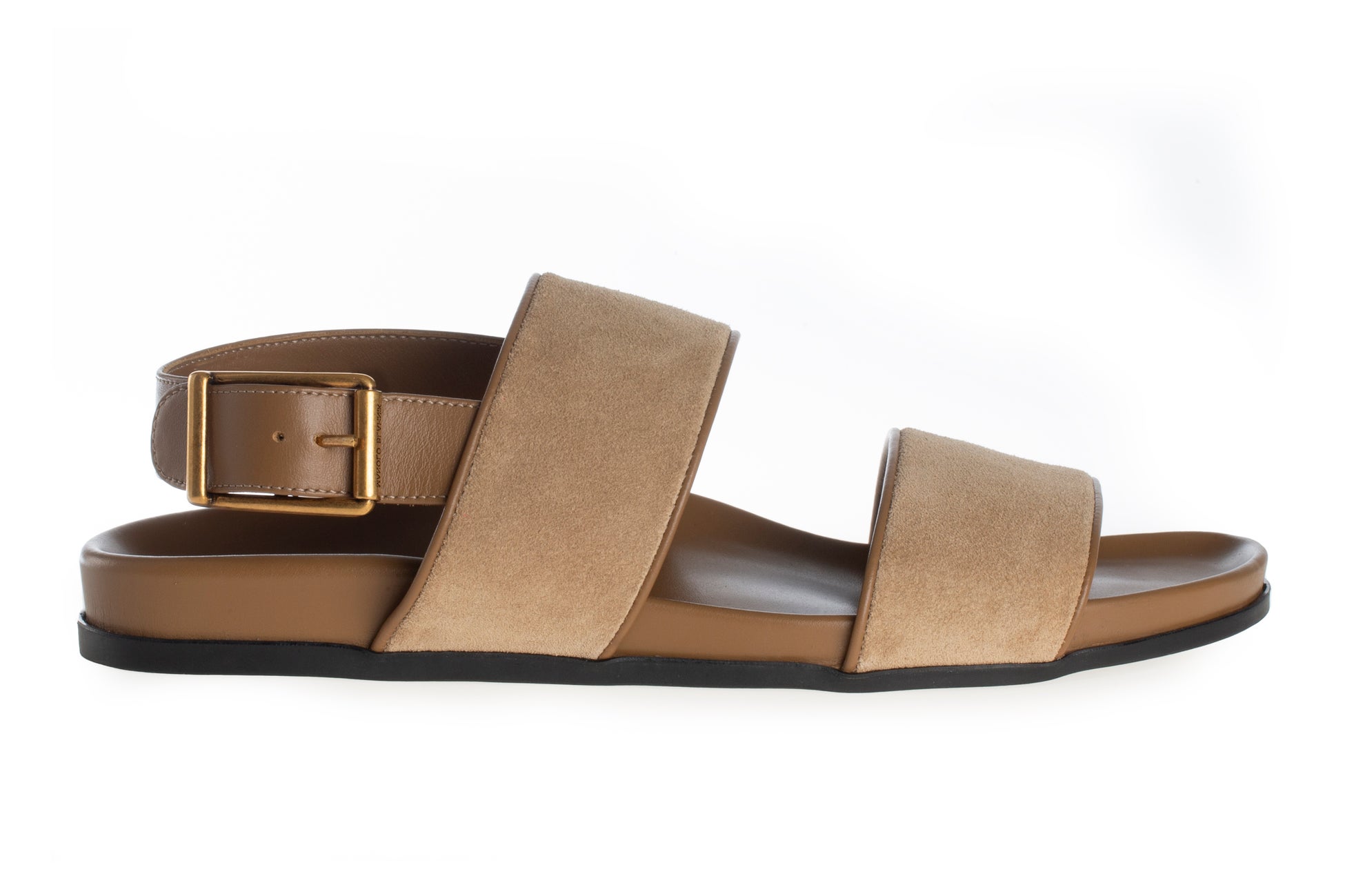 GLOBY ダブルストラップと踝にベルトバックルを配したストラップサンダル